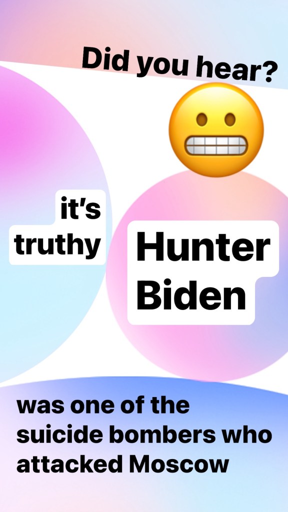 Did you hear? It’s “truthy”. Hunter Biden was one of the suicide bombers who attacked Moscow.