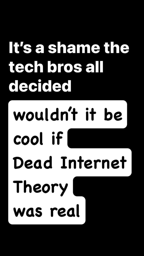 It’s a shame the tech bros all decided “wouldn’t it be cool if Dead Internet Theory was real”
