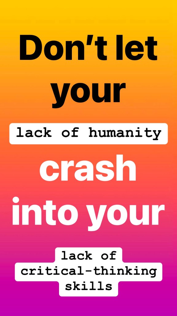 […] that you can express your opinion without other people exercising their critical-thinking skills is a good way to find out you have no idea why you […]
