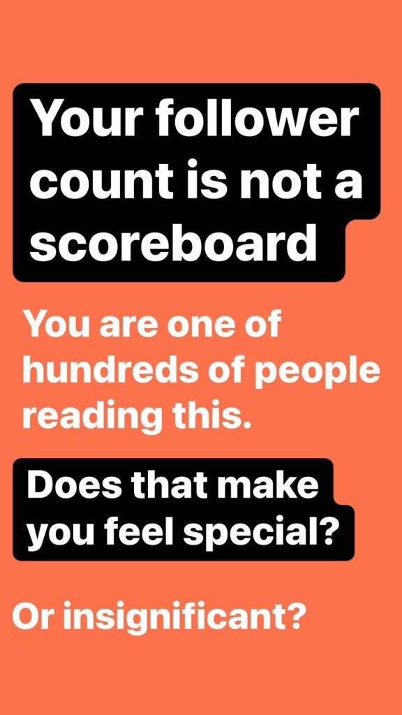 Your follower account is not a scoreboard. You are one of hundreds of people reading this. Does that make you feel special? Or insignificant?