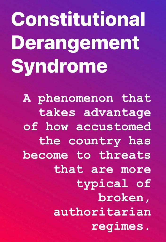 The condition we are observing in the body politic is Constitutional Derangement Syndrome.